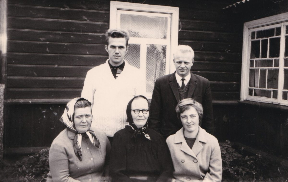 Taga Mareti onu ja isa. Ees vanaema, vanavanaema ja ema. Pilt on tehtud Mareti ema sünnikodus.